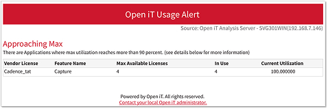 Open iT sends real-time alerts to IT managers about potential license denials and usage bottlenecks, allowing for quick resolution and continuous workflow.